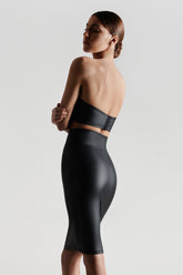 Matte leather effect bustier bra. Half-moon underwired cups without pads . Lined on the front and the cups for a seamless appearance. The collection's signature "feti-chic" ring embellishes the décolleté, inviting you to attach it. Adjustable hook-and-eye fastening on the back.