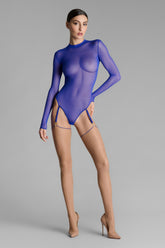 Maison Close's signature cut and curled stockings. Nude with blue seams that match CORPS À CORPS NÉON collection.