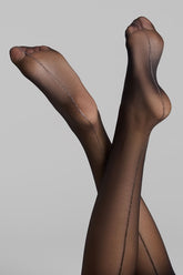 LEGWEAR Cut and curled lurex back seamed stockings 20D - Black/Silver