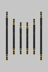 Six removable and adjustable Signature double suspenders straps with gold accents. The two-way ties mean you can accessorise your stockings with all your Maison Close lingerie and ready-to-wear without needing a garter belt. Play about with it. It's an opportunity for each Muse to create their own mix and match.