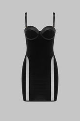 ROCOCO dress in velvet, inspired by corsetry, designed to sculpt the silhouette with softness. Flexible steel boning structures the cut and cinches the waist, while the lightly padded underwired cups with removable inserts create a perfectly mastered push-up effect.