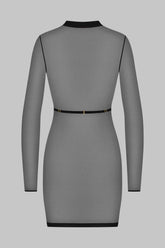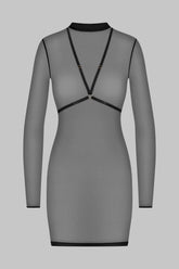 This black colour short dress features soft mesh with a sheer iridescent appearance.