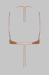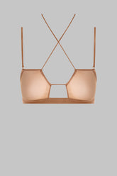 Wireless bralette crafted from a fine jersey with shiny, subtly sheer reflections. The seamless molded cups are elegantly structured with ruching at the neckline. The halter lacing is repositionable and adjustable thanks to a unique slider and gold lipstick accessories signed by Maison Close, enhancing your neckline and allowing for customized styling. Thin, flat adjustable straps ensure a perfect fit. An elastic underband hugs and sculpts the bust. Adjustable and non-removable lacing closure at the back.
