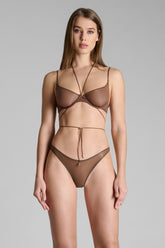 High-cut thong crafted from a fine jersey with shiny, subtly sheer reflections. Accentuated with a graphic cut-out at the front, it offers a bold nod to the 80s.