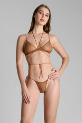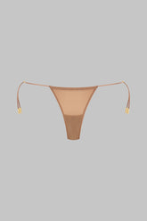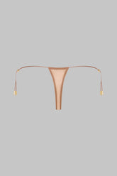 Mini thong crafted from a fine jersey with shiny, subtly sheer reflections. An essential iconic cut. Delicately ruched at the front and back, it offers an elegant fit. The side lacing is adjustable thanks to a unique slider and gold lipstick accessories signed by Maison Close, to be styled as you wish!