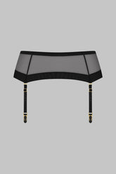 This black colour suspender belt features soft mesh with a sheer iridescent appearance. Clip fastening on the back.