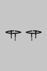 Two Signature garters stamped with the Maison Close logo. Adjustable elasticated bands with silver accents. Movable mini suspender straps for positioning on either side of the leg once the garter is adjusted.