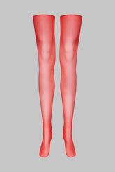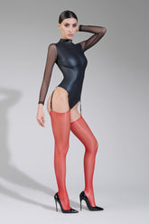 Maison Close's signature cut and rolled stockings now come in an ultra-shiny version. The unique oiled effect combined with the exclusive red define an ultra-feminine, bold look. Held in place by a Maison Close suspender belt, they elongate the figure without leaving any marks.