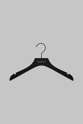 Maison Close wooden hanger with metal hook. Matte black with gold logo. Ideal for hanging up your bodysuits, catsuits and dresses, it's the ultimate accessory for showing off your wardrobe.