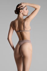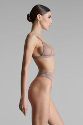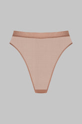 This nude colour high-rise thong features soft mesh with a sheer iridescent appearance.