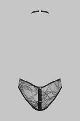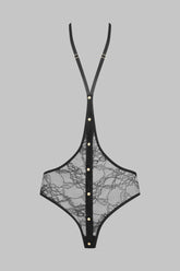 The Harness Panty JEUX MAGNÉTIQUES envelops the body in delicate floral lace, enhanced with a sensual harness that adjusts around the neck. Conceived as a centerpiece of the game, it opens entirely from front to back thanks to a series of golden magnetic buttons hidden within its lines. The harness is worn like a body jewel, slipped on to draw a confident and structured silhouette. A singular piece, designed to reveal and liberate at the chosen instant.