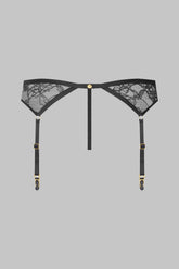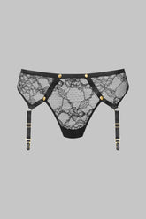 A bold and hybrid piece, the Suspender Thong JEUX MAGNÉTIQUES combines the lightness of a thong with the structure of suspenders. The removable thong attaches to the main structure with golden magnetic buttons, for quick opening and a perfectly mastered game of revelation. The suspender belt can be worn alone, while the thong is designed to be used only in combination with it. The suspenders, non-removable, are adjustable for a precise fit. A piece designed to reverse roles, depending on the moment.