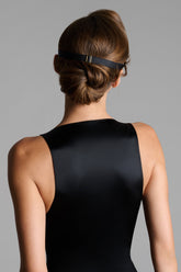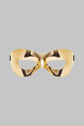 Its exclusive rigid mold, covered with a luxurious gold plating both inside and out, gently embraces the contours of the face for a perfect fit. Designed to suit all face shapes, this unisex one-size model is adjustable thanks to its black elastic strap.