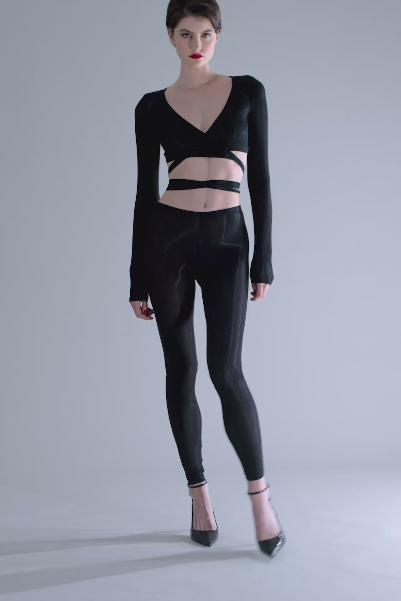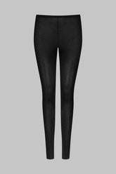 Long, minimalist leggings with a unique feel. Stretchy, ultra-soft, lightweight ribbed modal that stretches and has a sheer, shiny sheen. Elasticated tunnel waistband. Figure-hugging design.