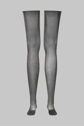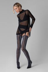 Maison Close's signature cut and curled stockings reveal their ultra-shiny side. The silky black voile is woven with silver Lurex® thread for an infinitely visual effect. When paired with Maison Close dresses with their plunging necklines, they show off your scintillating legs with a touch of sophistication. Soft touch to the skin. Made in Italy in a workshop known for its excellence.