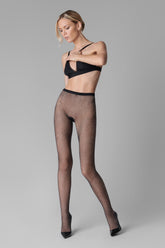 The fine fishnet tights are embellished with silver Lurex® thread. An ultra-shimmering effect while retaining the softness of fishnet. Paired with Maison Close dresses with their plunging necklines or with a bodysuit, they show off your gleaming legs with a touch of sophistication. Its flat high waistband and cotton gusset provide ultimate comfort. Without foot support, opt for heeled sandals. Made in Italy in a workshop known for its excellence.