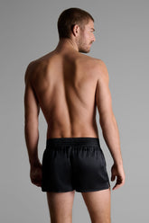 Men's Boxer in natural silk. A fluid and ultra-comfortable boxer brief cut shows off the body. A wide elastic waistband covered in gathered silk provides perfect support.