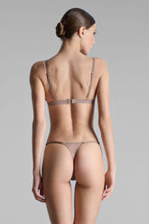 This nude colour mini thong features soft mesh with a sheer iridescent appearance.