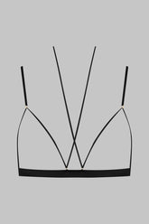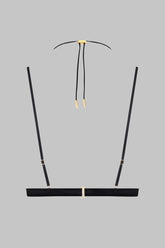 Open triangle bra, combining satin softness and boldness. Designed to reveal breasts in style. The neck lacing, repositionable and adjustable thanks to a unique adjuster and golden lipstick accessories by Maison Close, sublimates your cleavage while allowing customization according to your desires. The thin, flat, adjustable straps ensure a perfect fit. An elastic band around the bust structures the chest. Adjustable hook closure at the back.