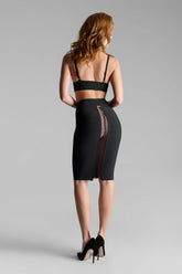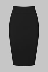 The pencil skirt from the Nuit Infinie collection captivates with its highly fitted cut and high-waisted design. The back lacing, adjustable with a stopper, ensures precise support while adding a distinctive graphic touch. The midi length offers an elegant and timeless allure, perfect for both day and evening wear.