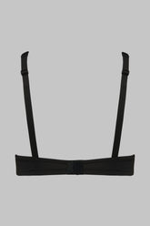 The plunging teardrop neckline reveals the skin, outlined by bordered tulle that defines the line with precision. Featuring underwires but no padding or lining, it offers natural support and a free, effortless allure. It fastens discreetly at the back with a hook-and-eye closure and adjusts with adjustable straps.
