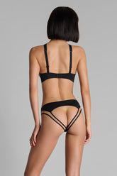 The open high-waisted panty – Pure Tentation reinterprets an iconic shape through the lens of suggestion. The high waist defines the hips, while the open back elegantly breaks the rules. Opaque microfiber is juxtaposed with sheer tulle, playing with contrast and layering to create a sensual graphic effect. No cotton lining at the crotch.