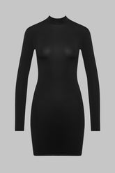 The Minuit long-sleeve dress Pure Tentation wraps the body in a veil that’s both graphic and airy. Its two-material design, with sheer tulle and opaque microfiber, plays on subtle contrasts, revealing the silhouette in a perfectly balanced way. The high neck defines the neckline, while the ultra-sheer back blurs the boundary between garment and skin. Its short, Minuit-length cut lets the legs appear with lightness.