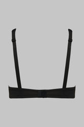 The plunging teardrop neckline reveals the skin, outlined by bordered tulle that defines the line with precision. Featuring underwires but no padding or lining, it offers natural support and a free, effortless allure. It fastens discreetly at the back with a hook-and-eye closure and adjusts with adjustable straps.