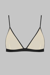The triangle bra Pure Tentation reveals the body with intentional delicacy. Its two-material construction blends sheer tulle over the bust with opaque microfiber cutouts. Wireless, it offers a second-skin feel, enhanced by bust darts for a naturally tailored fit. Thin straps are adjustable, and it fastens discreetly at the back with a hook-and-eye closure.