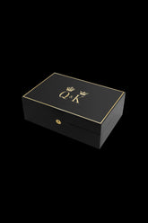 Crafted in black lacquered wood, its lid bears a golden metal signature, Queen & King, embossed by hand like a reinvented royal crest. Inside, it is lined with a deep violet velvet — the Maison’s DNA shade — reminiscent of plush alcoves where secrets change hands. Two golden keys allow the box to be locked, keeping a secret safe until the moment it is revealed.