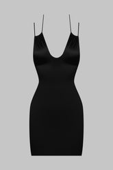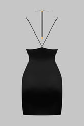 Short dress combining satin softness and unique style. Neckline structured by a subtle pleat. The neckband lacing, repositionable and adjustable thanks to a unique adjuster and golden lipstick accessories by Maison Close, enhances the neckline and back while allowing customization according to your desires.