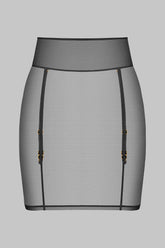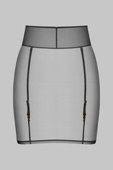 The L’AMOUREUSE short garter skirt, in tulle of absolute transparency, features a doubled waistband for a precise fit. A transverse seam construction complements the adjustable, removable garters. This slip skirt can be worn over other pieces in the collection or layered under your wardrobe to build transparent silhouettes.
