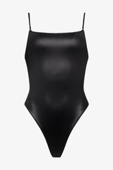 The Splash One-Piece Swimsuit with Straps seduces with its lightweight microfiber and wet-look finish, embracing the body like a second skin. Its sculpting, high-cut thong silhouette subtly enhances every curve. Lined at the crotch for added comfort, this piece is both alluring and wearable. Non-removable straps, adjustable with fine gold-tone metal accents, offer a perfect fit and a luminous touch.