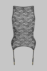 This suspender tank top is embellished with mostly recycled openwork lace. With its flat elasticated trim, its shape emphasises your curves for a unique style. Four removable, adjustable Signature straps with gold trim – interchangeable with the other Signature straps available in a range of colours. An opportunity for each Muse to create their own unique mix and match.