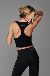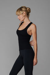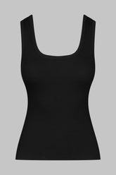 The black tank top stands out for its sleek, fitted style. It is made from organic ribbed cotton, combining softness, just the right thickness and incomparable quality.