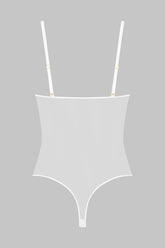 This white colour thong body features soft mesh with a sheer iridescent appearance.