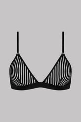 Microfibre triangle bra with openwork, transparency and graphic stripes.