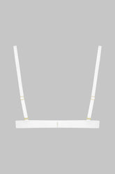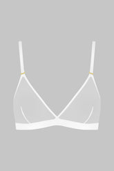 This triangle bra in a white colour with no underwiring features soft mesh with a sheer iridescent appearance.