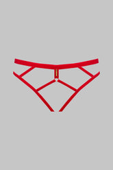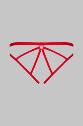 The VELVET SET red open panty plays on purity and provocation. Crafted from soft-touch velvet, it reveals an open structure with a refined geometric design, adorned with a golden Maison Close-engraved charm. Designed to be worn on its own or attached to the matching harness, it creates the illusion of a bodysuit. Fully adjustable, it hugs the body with precision and subtlety. A trompe-l'œil lingerie piece — minimal and graphic.