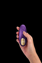 Ergonomic pebble-shaped design specially created to fit perfectly between the legs — hands-free — and accompanied by a remote control. Designed for stimulation on the stomach or the back, it is particularly suited for use on the stomach, allowing it to be slipped into panties or tights to keep it in place and play as a couple.