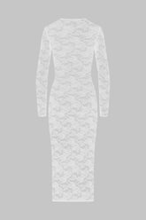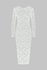 This long-sleeved dress features mostly recycled openwork lace. Fitted style with flat elasticated trim. The midi length accentuates your curves for a confident '80s style.